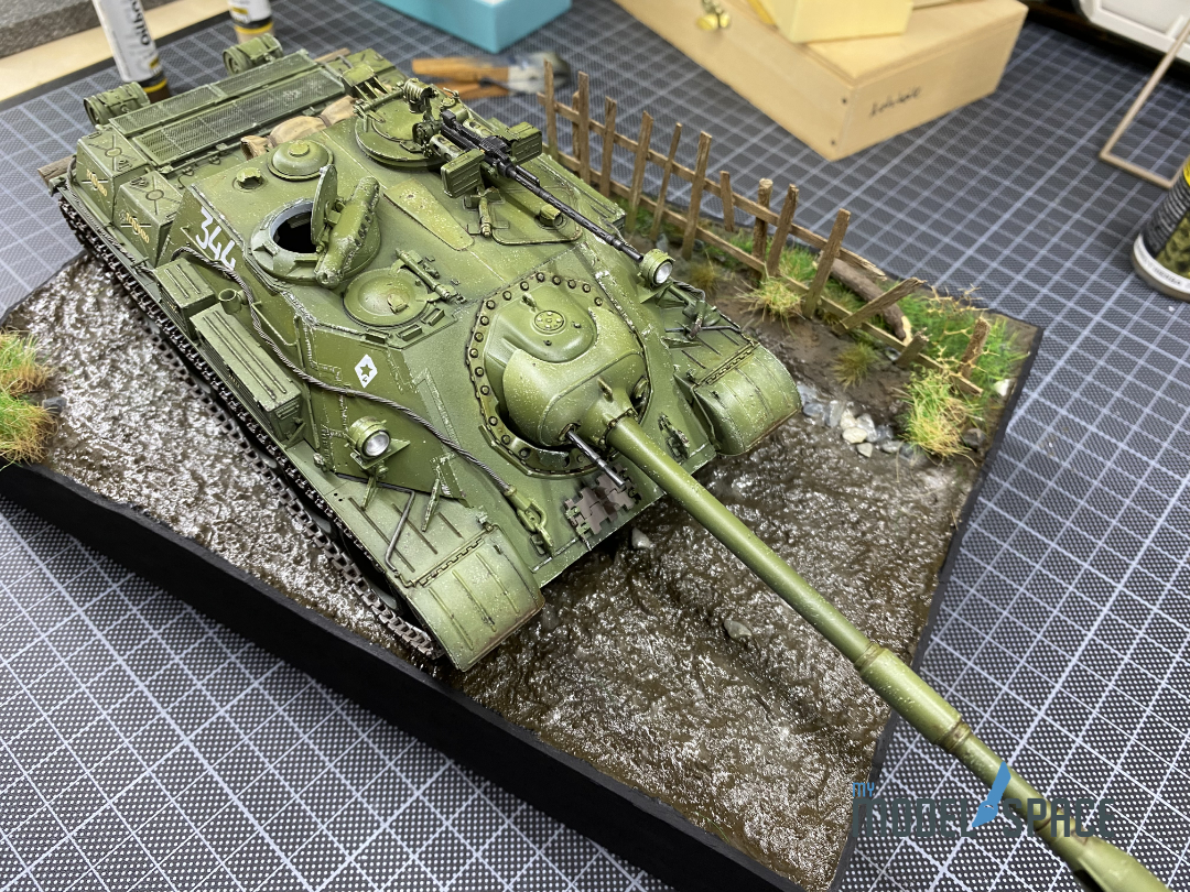 Ich nehme jetzt an, dass das was nicht fertig ist zum Bsp. die Raupen sind, die noch keinen Matsch dranhaben (was man erwartet, wenn der Panzer gerade durch den Matsch fährt).