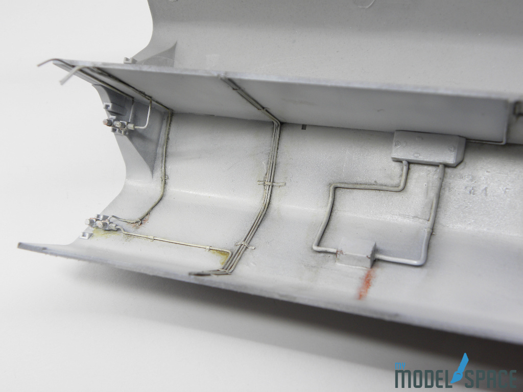 andere Rakete in Flugstellung bauen. Die Innenseite wirkt recht kahl und daher habe ich einige Leitungen anhand Fotos ergänzt.