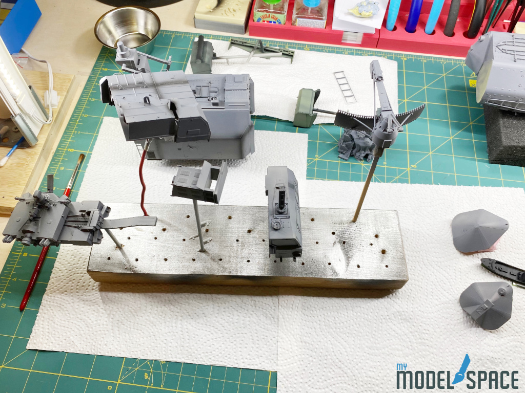 Weiter ist nun die Kommandozentrale fertig und wartet auf die Bemalung. Trumpeter hat die Luken und Türen separat dargestellt und auch gut detailliert.